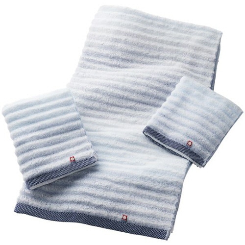 | 商品仕様 | ●種類/ウォッシュタオル ●色/ブルー ●寸法/34×36cm ●材質/綿100% ●生産国/日本 ●その他仕様/●無撚糸・パイルジャカード・今治タオルブランドネーム |