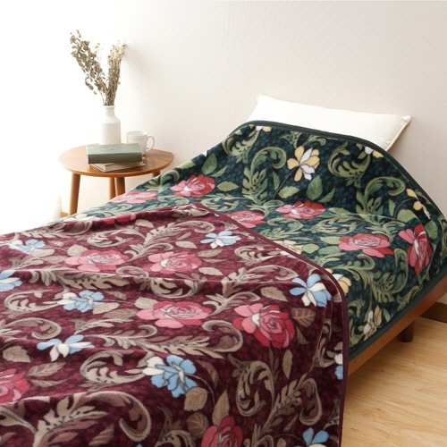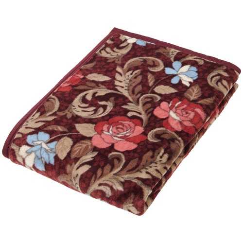 | 商品仕様 | ●種類/毛布 ●寸法/140×200mm ●色/エンジ ●柄/バラ ●材質/パイル糸:アクリル100%、地糸:ポリエステル100% |