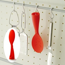 自分で立つから衛生的、太くて持ちやすい柄はフックにもかけられます。ヘラの形はごはんをふんわり、ふっくらとよそえるスプーン型。お料理の取り分けもしやすく、おかゆ等もよそえます。りりしいスマイルマークつき。