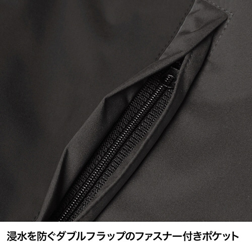 ●雨の侵入を防ぐダブルフラップのファスナー付きポケットです。