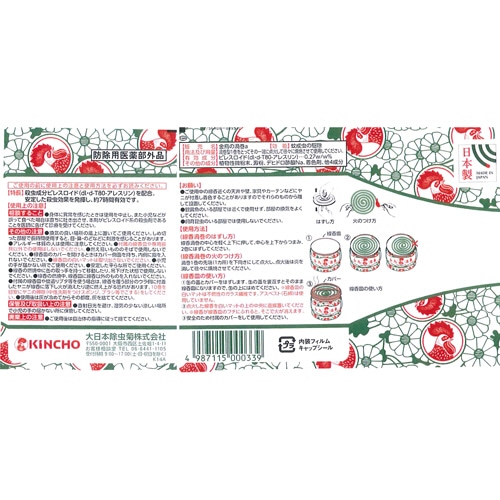 | 商品仕様 | ●効果/駆除 ●対象害虫/蚊成虫 ●有効成分/ピレスロイド(dl・d-T80-アレスリン) ●サイズ/W132×D132×H116mm ●その他仕様/●持続時間:約7時間 ●防除用医薬部外品 ●備考/※直射日光を避け、湿気の少ない涼しい場所で小児の手の届かない所に保管してください。 ※販売名:金鳥の渦巻a ●シリーズ名/金鳥の渦巻 |