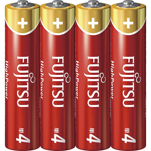 ●FUJITSU アルカリ乾電池、ハイパワータイプ、単4形。シュリンクパック・4本入。