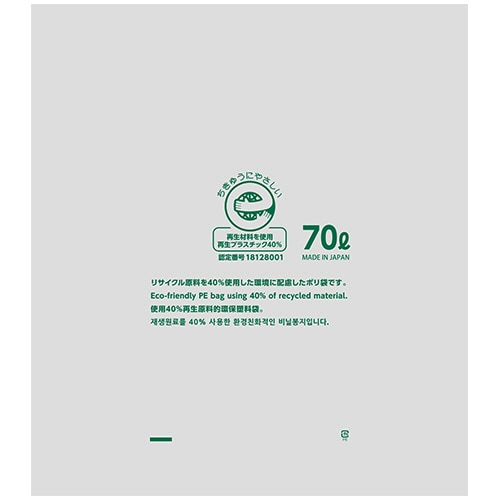 | 商品仕様 | ●容量/70L ●容量表記/あり ●色/乳白半透明 ●寸法/タテ900×ヨコ800×マチmm ●厚さ/0.04mm ●材質/低密度ポリエチレン+再生ポリエチレン ●その他仕様/●製造国:日本 ●印刷あり ●容 量/70 |