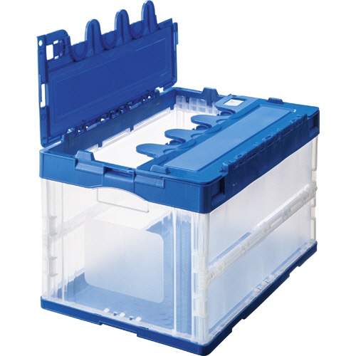 TANOSEE 折りたたみコンテナ フタ一体型 50L ダークブルー/透明 1台