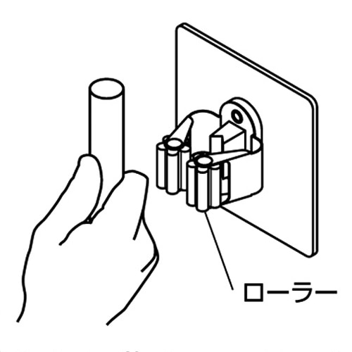 壁を傷つけず、取り付け、取り外しが簡単なモップハンガー。