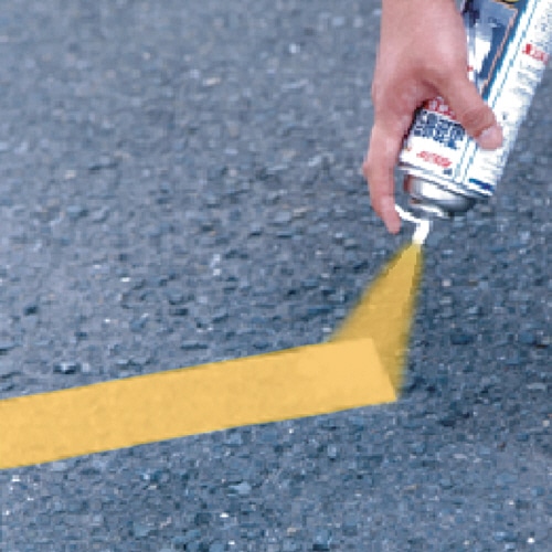 アスファルトやコンクリート面に簡単にラインや文字が書けるマーカー。