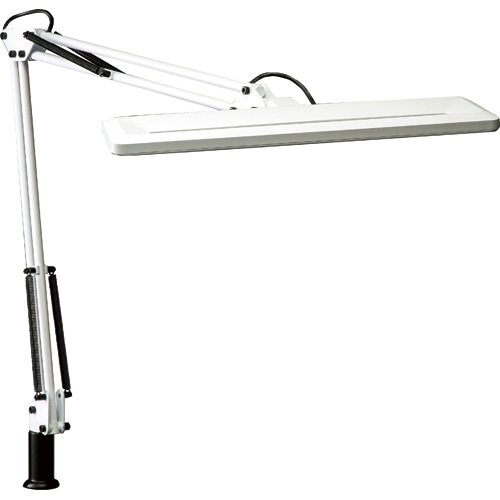商品仕様 | ●寸法/セード幅:326×81、セード高:19mm、アーム長:356+356mm ●重量/0.8kg ●色/ホワイト ●全光束/580lm ●直下照度/1540lx ●色温度/5000K ●調光機能/無段階30~100% ●定格寿命/40000時間 ●光源/6.5W LED×1 ●クランプ幅/~55mm ●電源ケーブル長さ/1.8m ●消費電力/6.5W ●その他仕様/●光色(LED):昼白色 ●光の強さ:JIS A形相当 ●演色性:Ra90 ●ラストメモリー機能 ●保証期間/1年 |