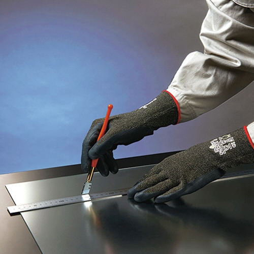| 商品仕様 | ●サイズ/M ●全長/約24.5cm ●中指長さ/約7.8cm ●材質/樹脂部:ニトリルゴム、繊維部:ナイロン・ポリエステル・アラミド・金属繊維(ステンレススティール)・その他 ●色/ブラック、裾部:ブルー ●その他仕様/●耐切創タイプ ●EN388:2016 耐切創レベルx/E ●品 種/耐切創手袋(アラミド繊維) ●サ イ ズ/M |