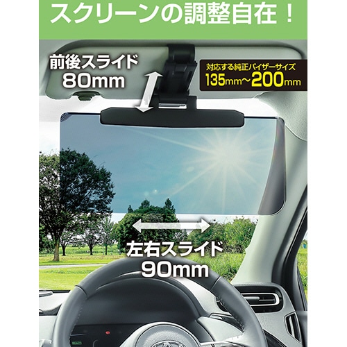 | 商品仕様 | ●寸法/W330×D53×H175mm ●その他仕様/●サイズ:M ●スクリーンサイズ:330×145mm ●対応する純正バイザーサイズ:奥行135~200mm以内、厚み21mm以下 ●付属品:取付フック |