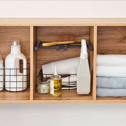 ちょっとしたすき間を有効活用できる、ミニサイズの突っ張り棚