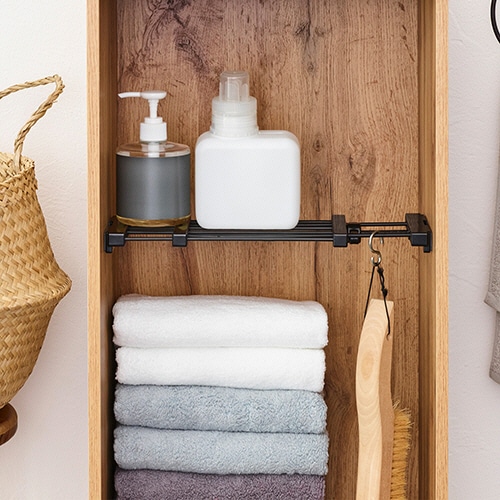 ちょっとしたすき間を有効活用できる、ミニサイズの突っ張り棚