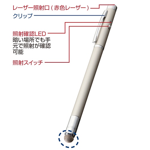タッチペンと指示棒機能がついた、赤色レーザーポインター