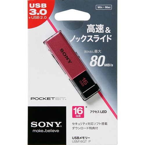 ソニー USBメモリー ポケットビット Tシリーズ 16GB ピンク キャップレス USM16GT P 1個