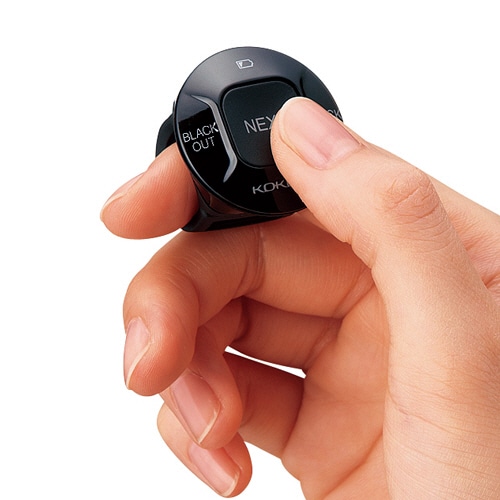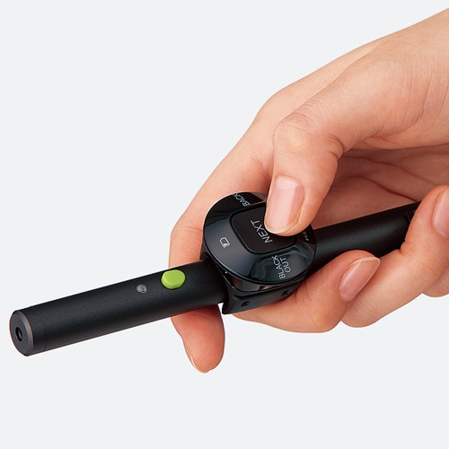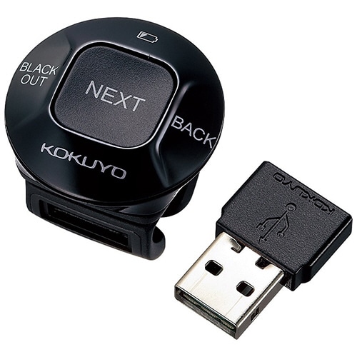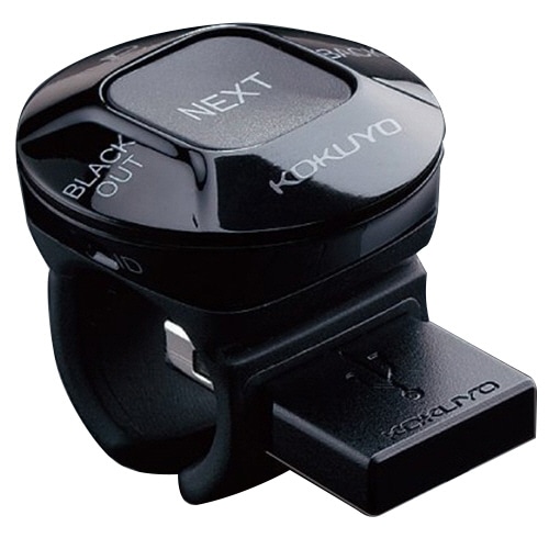 ●プレゼンテーション中における操作の優先順位を考慮してパソコンのスライドページ送り機能に特化。指輪のように指に装着することで両手が自由に使え、プレゼンに集中できる。