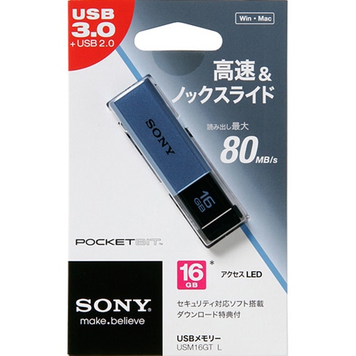 ソニー USBメモリー ポケットビット Tシリーズ 16GB ブルー キャップレス USM16GT L 1個