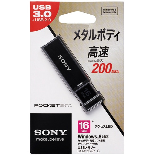 ソニー USBメモリー ポケットビット QXシリーズ ノックスライド式高速 16GB ブラック USM16GQX B 1個