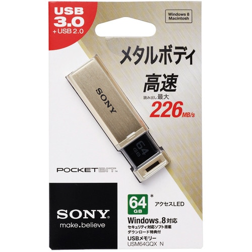 ソニー USBメモリー ポケットビット QXシリーズ ノックスライド式高速 64GB ゴールド USM64GQX N 1個