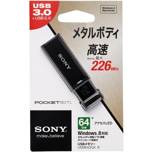 ソニー USBメモリー ポケットビット QXシリーズ ノックスライド式高速 64GB ブラック USM64GQX B 1個
