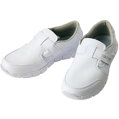| 商品仕様 | ●対象/男女兼用 ●足サイズ/25cm ●色/ホワイト ●材質/甲被:合成皮革+ナイロンメッシュ、底:EVA+合成ゴム ●その他仕様/●静電性 ●重量:160±10(23cm・片足の値) ●カラー/ホワイト(系) |