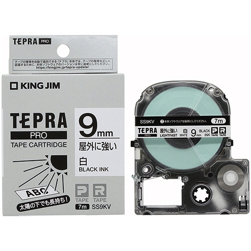 キングジム テプラ PRO テープカートリッジ 屋外に強いラベル 9mm 白/黒文字 SS9KV 1個