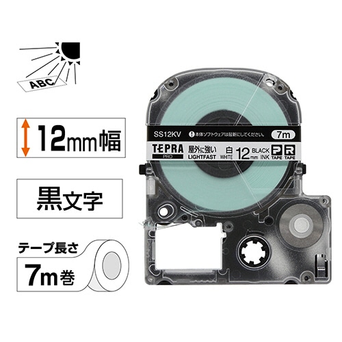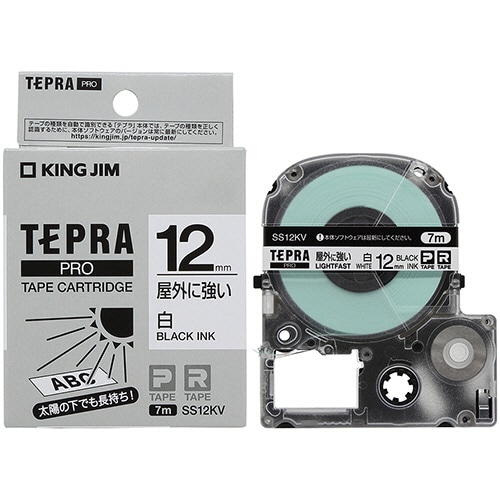 キングジム テプラ PRO テープカートリッジ 屋外に強いラベル 12mm 白/黒文字 SS12KV 1個