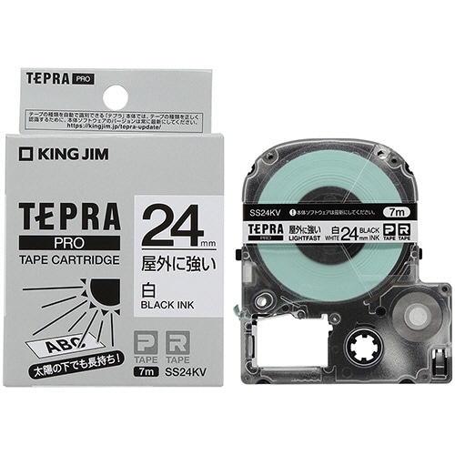 キングジム テプラ PRO テープカートリッジ 屋外に強いラベル 24mm 白/黒文字 SS24KV 1個