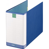 ●左右両方から開閉できるので書類の抜き差しが便利なA4ヨコ、背幅121mm、ブルーのパイプ式ファイルです。