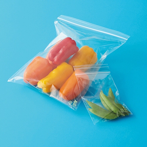 ●グリーンPE、環境対応型インキを使用した、120×170mmのチャック付きポリ袋100枚入。