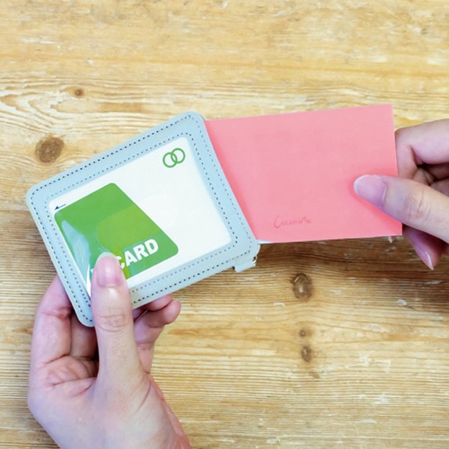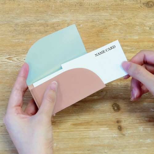 ●パスケースなどに収めやすい薄手、小型の名刺ケースのスモーキーピンクです。