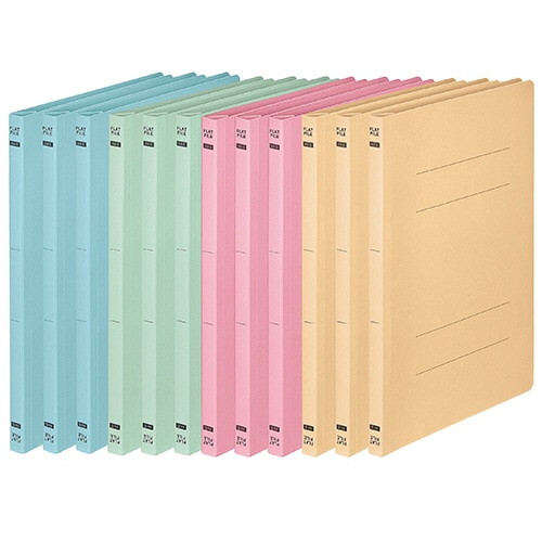 ●フラットファイルA4タテ、背幅18mm。少量で色分け・シェアに便利な4色アソートです。