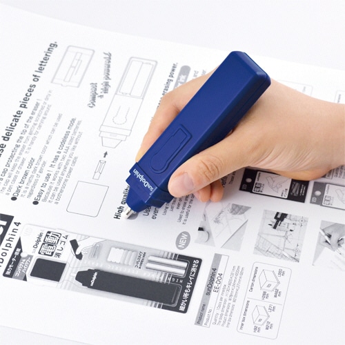 | 商品仕様 | ●対応製品/EE-D5R、EE-D6R ●寸法/W25×D21×H130mm ●重量/80g ●その他仕様/●電池式 ●付属品:プラ消し4本、砂消し3本、単4形アルカリ乾電池2本、消しゴムホルダー2個 ●備考/※重量は電池含む |