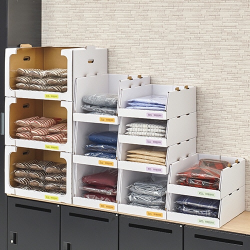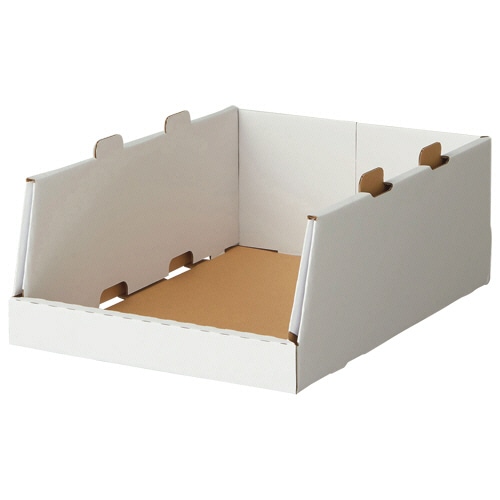 | 商品仕様 | ●サイズ/S ●寸法/W300×D430×H150mm ●重量/0.3kg ●色/ホワイト ●材質/段ボール ●その他仕様/●1段あたり耐荷重:約10kg ●積み重ね:最大10段 ●製造国:日本 ●備考/※寸法・重量は1枚あたり |