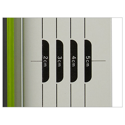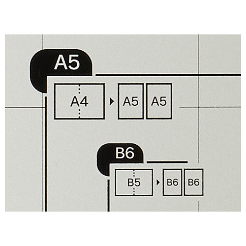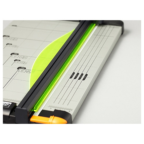 ●視覚的にわかりやすいイラストで表現された目盛りによって、規格サイズの用紙を半分に切ることも、短冊やカードなどの小さなものを切ることも、どちらの作業にも対応しています。