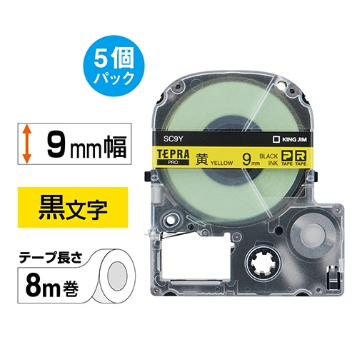キングジム テプラ PRO テープカートリッジ パステル 9mm 黄/黒文字 エコパック SC9Y-5P 1パック(5個)
