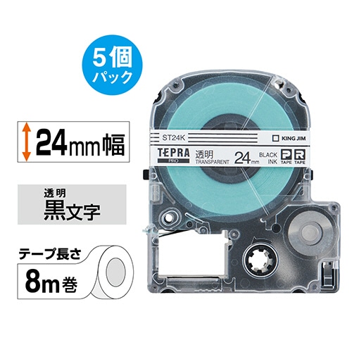 キングジム テプラ PRO テープカートリッジ 24mm 透明/黒文字 ST24K-5P 1パック(5個)