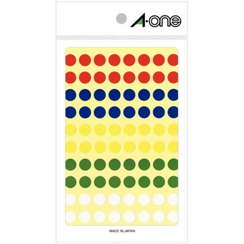 エーワン カラーラベル 丸型 直径9mm アソートタイプ 5色(赤・青・黄・緑・白) 07014 1パック(880片:80片×11シート)