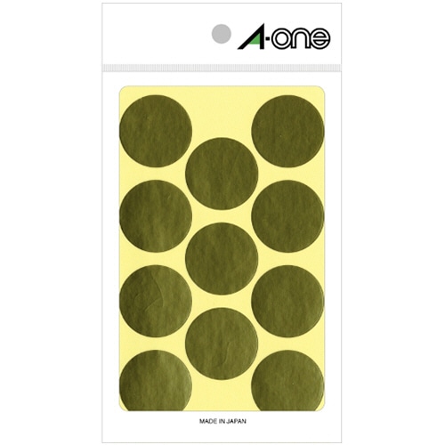 商品仕様 | ●色/金 ●ラベル直径/30mm ●ラベルの厚さ/0.08mm ●材質/アルミ箔紙 ●その他仕様/●シートサイズ:90×150mm ●面付:11面 ●合計片数:88片 |