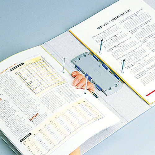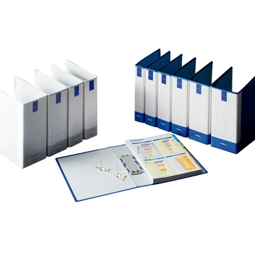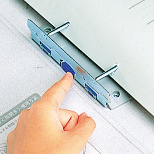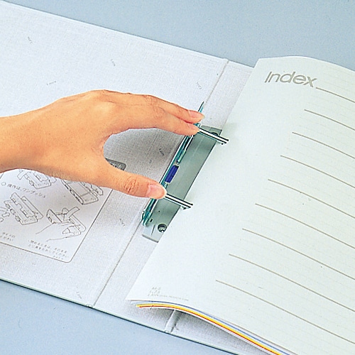 ●プッシュボタンで簡単に開く!両開きパイプ式ファイルのB6ヨコ、背幅71mmのブルーです。