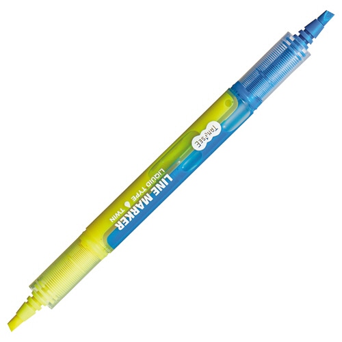 TANOSEE 蛍光ラインマーカー 直液式2色ツイン ブルー/イエロー 1本