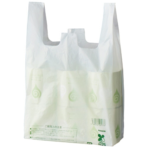 サトウキビ由来の植物性プラスチックを25%以上配合した、二酸化炭素の排出量削減に貢献できるレジ袋です。
