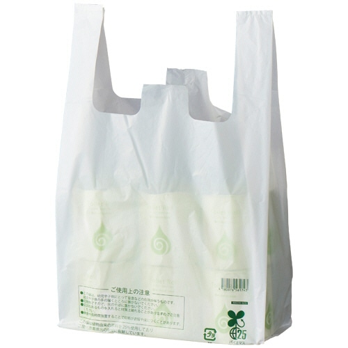 サトウキビ由来の植物性プラスチックを25%以上配合した、二酸化炭素の排出量削減に貢献できるレジ袋です。