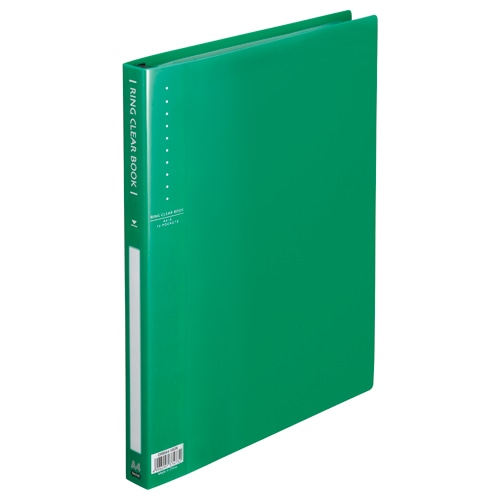 TANOSEE リングクリヤーブック A4タテ 30穴 10ポケット付属 背幅25mm グリーン 1冊