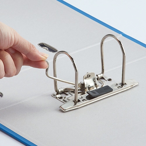軽くレバーを上げるだけでとじ具が開く。フラットページで閲覧も快適。