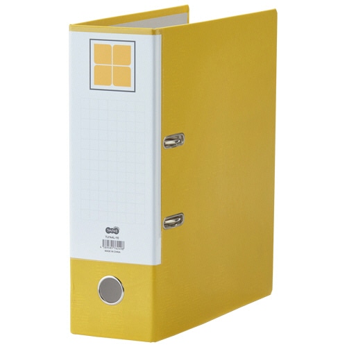 ●丈夫な貼り表紙タイプ。背幅100mmのレバー式アーチファイルの黄です。