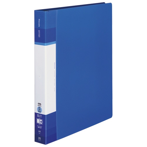 コクヨ クリヤーブック(Glassele) 替紙式・背ポケット A4タテ 30穴 25ポケット付属 背幅35-54mm ブルー ラ-GLB730B 1冊