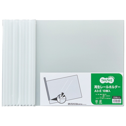 TANOSEE 再生レールホルダー A3ヨコ 10枚収容 白 1パック(10冊)