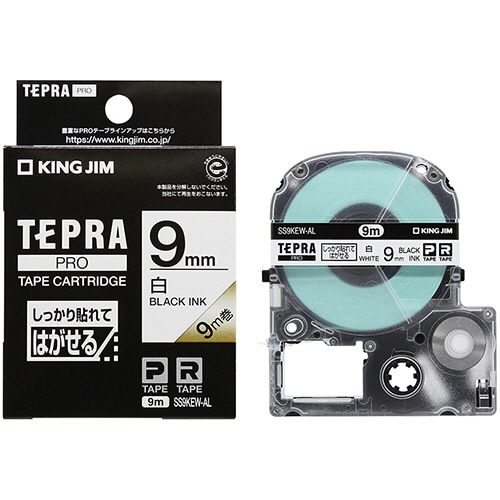 キングジム テプラ PRO テープカートリッジ しっかり貼れてはがせるラベル 9mm 白/黒文字 SS9KEW-AL 1個