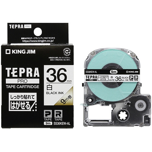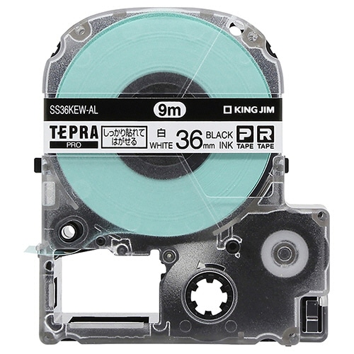 キングジム テプラ PRO テープカートリッジ しっかり貼れてはがせるラベル 36mm 白/黒文字 SS36KEW-AL 1個