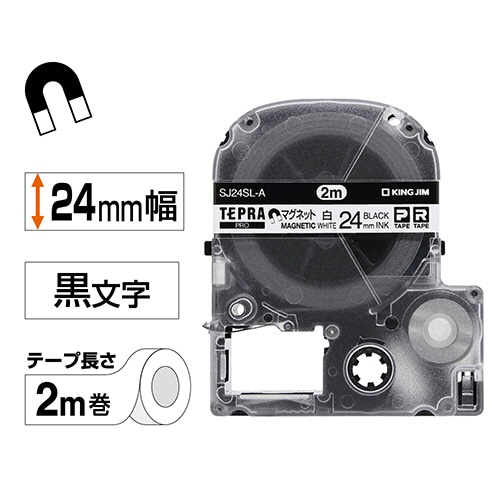 キングジム テプラ PRO テープカートリッジ マグネットテープ ロングタイプ2m巻 24mm 白/黒文字 SJ24SL-A 1個