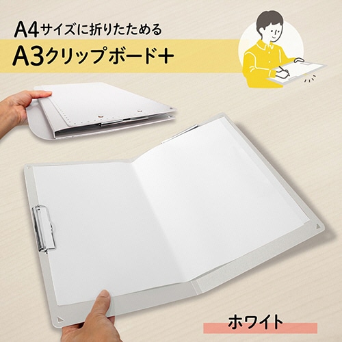 プラス A4サイズにおりたためる クリップボード+ A3 ホワイト FL-501CP-WH 1枚